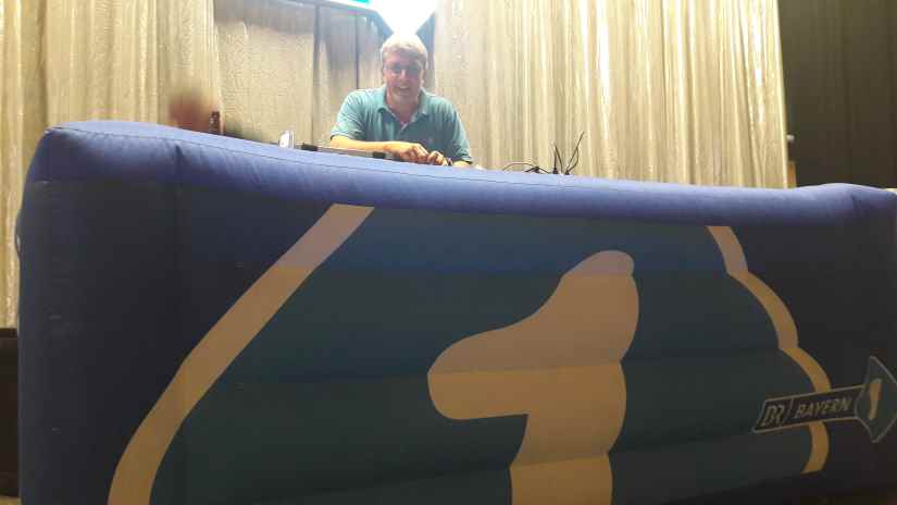 Zwischen den #Rocksongs moderierte Kauli auch noch durch den Abend, erzählte Anektoten und fruete sich besonders über den Bierpreis am Ausschank in der Stadthalle: "Erst am Wochenede habe ich für eine Maß Bier 14 Euro bezahlt, da ist das hier ja wie im eigenen Wohnzimmer." Verköstigt wurden die Besucher aber nicht nur mit trendigem Bier, auch für das leibliche Wohl war gesorgt. Stadthallenpächter michael Wirth stellte sich und seine Küche für den Abend gerne zur Verfügung. Und von der Bar aus, auf der Empore, konnten weniger tanzwütige das Geschehen von oben beobachten.