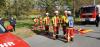 "Alles lief routiniert und perfekt ab", sagte Schmidt zu seiner Mannschaft. Zwei Wochen wurde intensiv geübt, damit jeder Schritt sitzt. Bei der THL-Leistungsprüfung geht es darum, eine Person aus einem PKW zu retten, Einsatz von "Schere und Spreizer" wird nur angedeutet. Nach dem Befehl: "Zur Übung fertig" ging es rasant los: Verkehrsabsicherung muss aufgebaut und alle Rettungsmittel auf einer bereitzustellenden Plane bereit gestellt werden. Erst wenn die Verkehrsabsicherung steht, darf der Angrifftrupp mit dem hydraulischen Rettungsgerät zum Fahrzeug vorrücken. Außerdem mss das Fahrzeug einerseits gegen wegrollen und anderen mechanischen Bewegeungen sowie gegen Brand gesichert werden - ein zweifacher Brandschutz ist notwendig, hier mit Feuerlöscher und Schnellangriff.