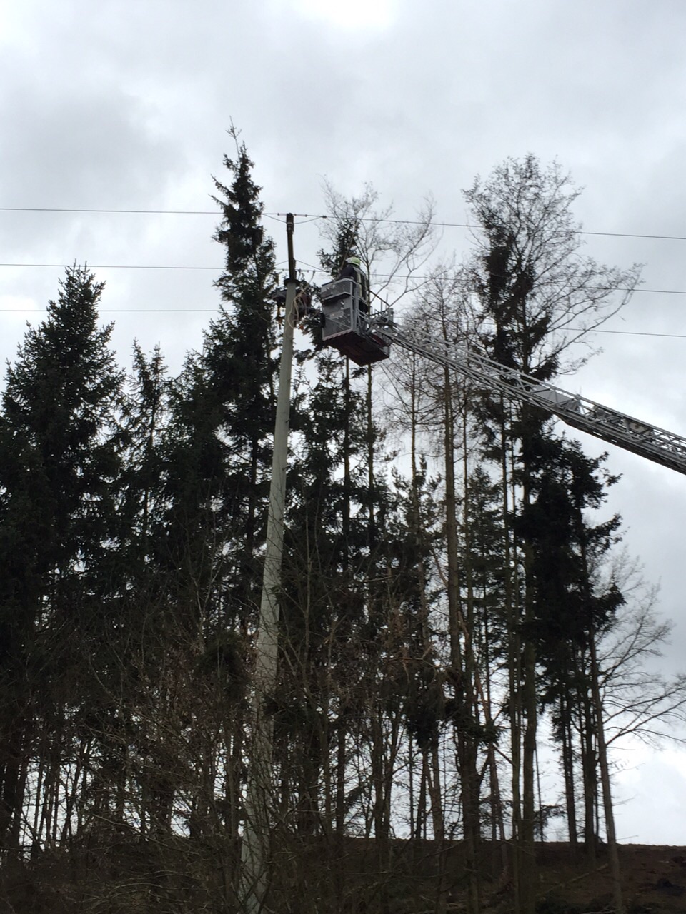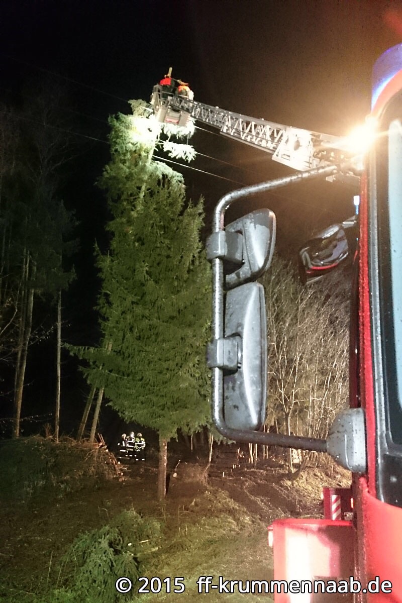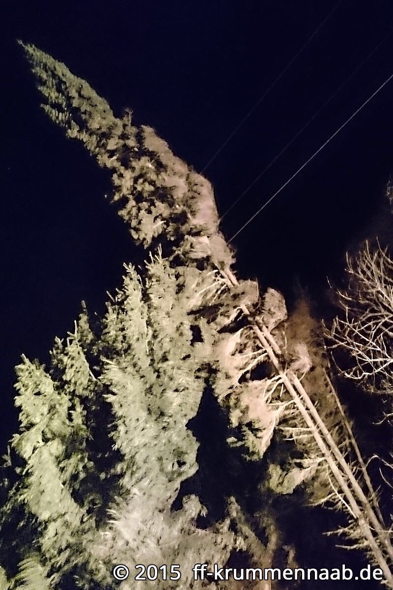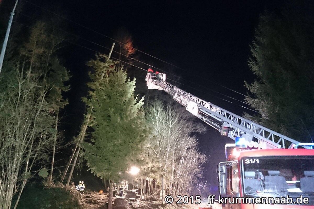 Der Stromfluss von Windischeschenbach über Lehen nach Krummennaab war unterbrochen. Die Feuerwehr Erbendorf rückte mit der Drehleiter an und befreite langsam Stück für Stück die Stromleitung von den herabgestürzten Baumteilen. Am Sonntagvormittag rückten die Feuerwehren Erbendorf und Krummennaab bei Tageslicht erneut zur Einsatzstelle aus, um den örtlichen Stromversorger bei Reparaturarbeiten zu unterstützen.