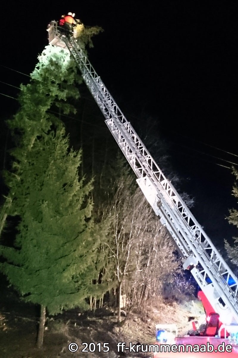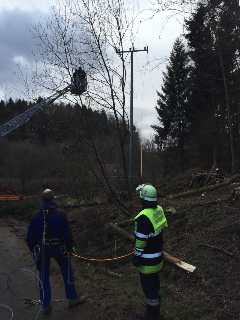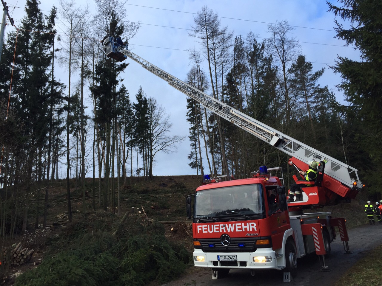 Der Stromfluss von Windischeschenbach über Lehen nach Krummennaab war unterbrochen. Die Feuerwehr Erbendorf rückte mit der Drehleiter an und befreite langsam Stück für Stück die Stromleitung von den herabgestürzten Baumteilen. Am Sonntagvormittag rückten die Feuerwehren Erbendorf und Krummennaab bei Tageslicht erneut zur Einsatzstelle aus, um den örtlichen Stromversorger bei Reparaturarbeiten zu unterstützen.