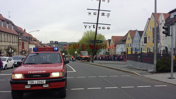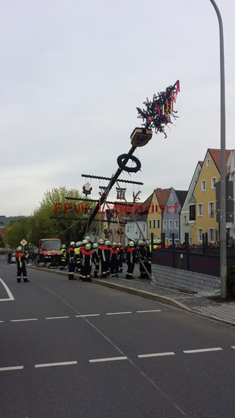 Mit einer halben Stunde Verspätung begann am Donnerstagabend das Maibaumfest auf dem Marktplatz in Erbendorf. Grund hierfür war ein Kellerbrand in Friedenfels, bei dem zahlreiche Einsatzkräfte der FFW Erbendorf gebunden waren. Mehrere Hundert Zuschauer harrten aber so lange aus und feierten in den Mai hinein.