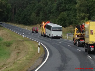 Schwierigkeiten gab es beim Abschleppen eines der Busse, der aufgrund des Unfallschadens nur schwierig von der Unglücksstelle verbracht werden konnte. Erst nach einigen Vorarbeiten durch das Abschleppunternehmen konnte der Bus in den frühen Mittagsstunden abtransportiert werden. Die Fahrbahn wurde anschließend durch die FFW Erbendorf gereinigt und konnte für den Verkehr freigegeben werden.