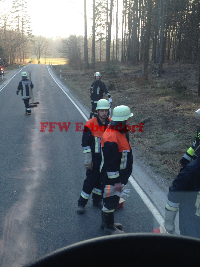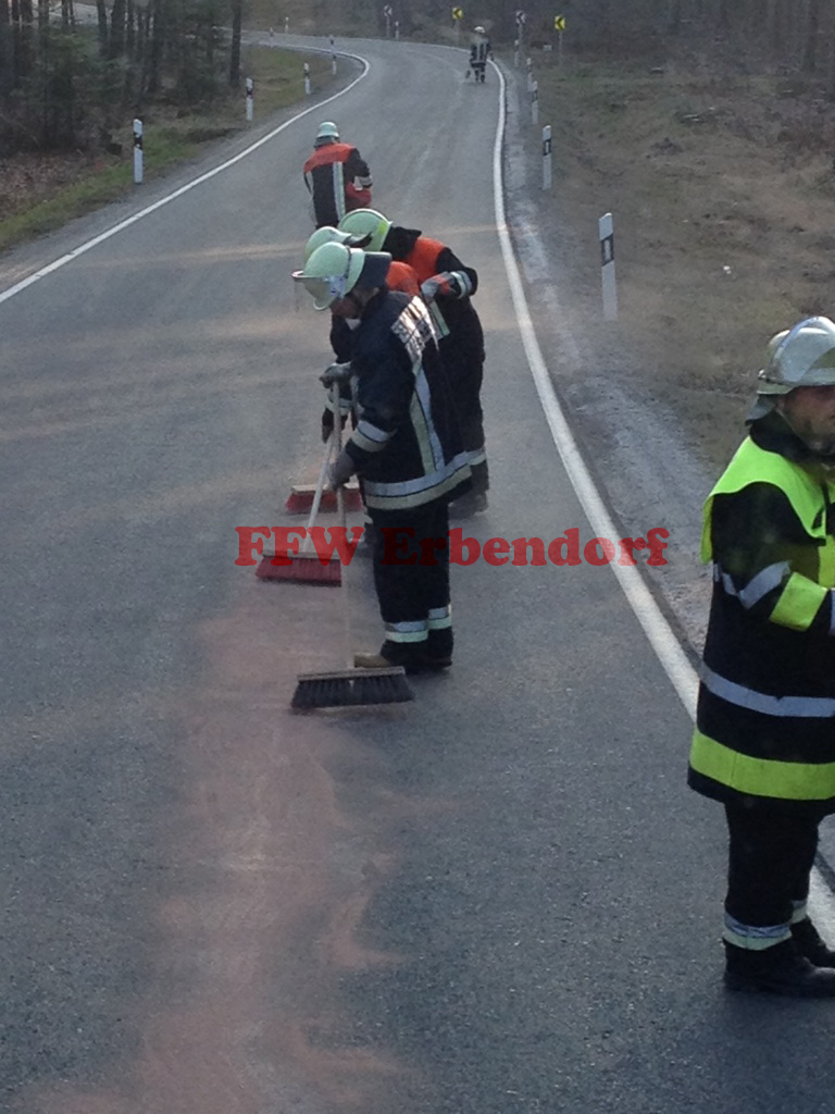 Am Mittwochnamittag gegen 16 Uhr wurden die FFW Erbendorf und Hessenreuth zur Beseitigung einer Ölspur auf der B299 am Hessenreuther Berg gerufen. Auf etwa 1 km Länge hatte sich das Mineralöl auf die Fahrbahn ergossen, bis etwa zum Abzweig nach Atzmannsberg. Der Verursacher ist derzeit nicht bekannt. Nach etwa einer Stunde Ölbindemittel auftragen, winwirken lassen und Abkehren, konnte die FFW Erbendorf den Einsatzort wieder verlassen. (Fotos: FFW Erbendorf/ CL)