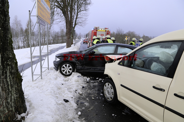 Zu einem Verkehrsunfall mit zwei leicht verletzten Personen wurde die Freiwillige Feuerwehr am Montagnachmittag gerufen. Auf der B299 kam es im Kreuzungsbereich Richtung Hessenreuther Berg am Ortsausgang von Erbendorf zu einem Zusammenstoß zweier Fahrzeuge. Die FFW Erbendorf übernahm die Verkehrsregelung und säuberte die Unfallstelle.