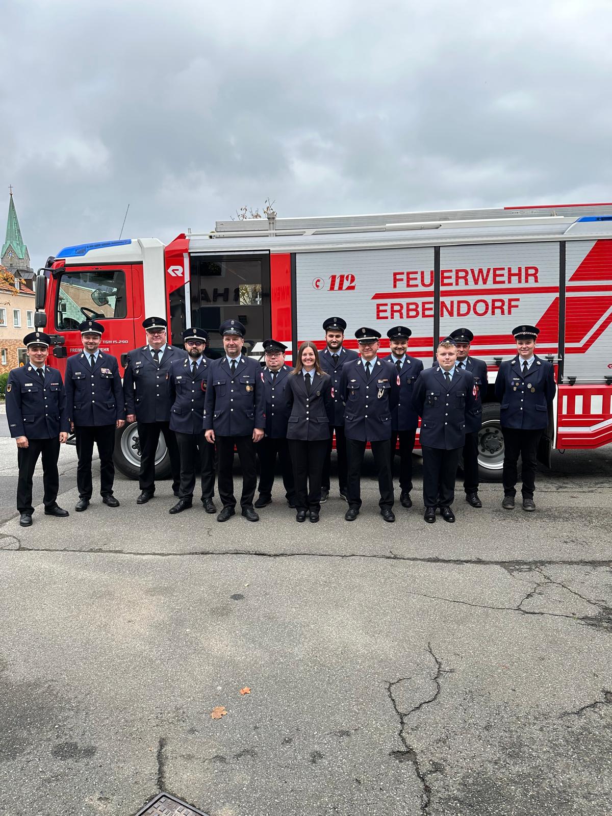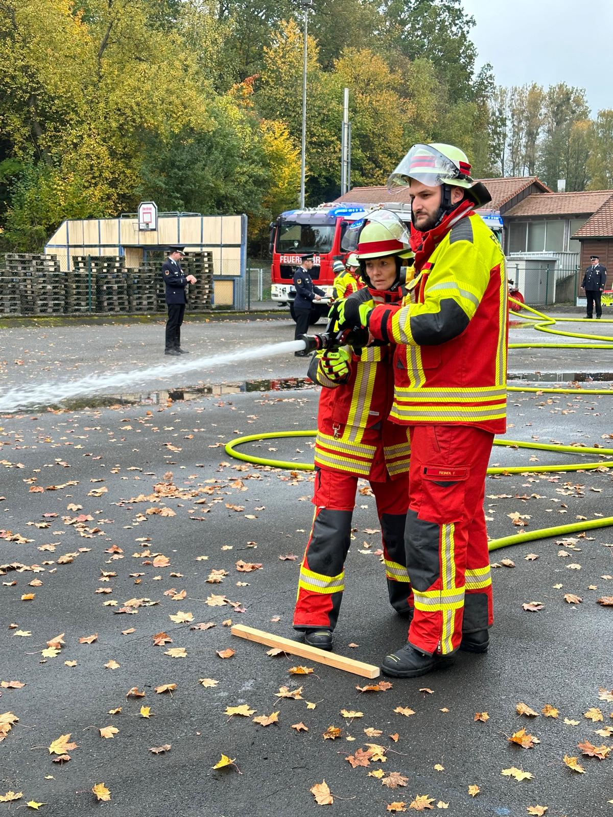 Erbendorf. α Eine ganz besondere Gruppe der Feuerwehr Erbendorf war zur Leistungsprüfung "Die Gruppe im Löscheinsatz" angetreten, denn neben fünf Seiteneinsteigern beteiligten sich mit Wolfgang Gruber und Roland Kaiser auch zwei ältere Kameraden, um erstmals das Leistungsabzeichen der Altersklasse "über 40" zu erlangen. Für Peter Michl war es vorerst die letzte Prüfung dieser Art, denn er hat die sechste und damit höchste Stufe erreicht und das rot-goldene Abzeichen dafür erhalten. Die drei Schiedsrichter der Kreisfeuerwehrführung, Dr. Klaus Helm, Christian Sirtl und Wolfgang Bauer, schauten von Beginn an genau auf die Durchführung der verschiedenen Aufgaben. Zunächst mussten von den Teilnehmern Knöten und Stiche gezeigt werden, während Gruppenführer und Maschinist je einen Fragebogen ausfüllten. Als nächstes stand der Aufbau der Löschwasserleitung an. Insgesamt drei Löschangriffe (Umsprühen von Eimern in 15 Metern Entfernung) müssten durchgeführt werden. Doch zuvor galt es, die Löschwasserversorgung aus einem nahegelegenen Hydranten zum Feuerwehrfahrzeug weiter zu den drei Strahlrohren sicherzustellen. Da für die gesamte Aufgabe ein Zeitlimit von 190 Sekunden bestand, musste zügig jedoch nicht überhastet gearbeitet werden.