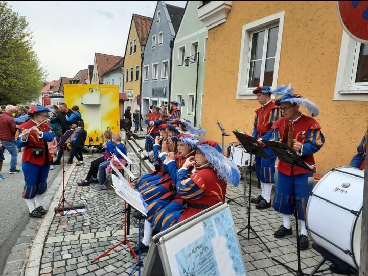 Bereits um 16 Uhr eröffnete die Stadtkapelle musikalisch die Maibaumaufstellung. Die Aktiven der Feuerwehr marschierten unter den Klängen des Spielmannszugs auf. Mit sogenannten Schwalben hievten die Kameraden den geschmückten Maibaum in die Höhe. Erst die letzten Meter brachte Maschinenkraft den Maibaum in seine endgültige Position. Für das Maifest stellte die Feuerwehr Bierbänke und -tische auf und sorgte bestens für das leibliche Wohl. Bei Standkonzerten von Spielmannszug und Stadtkapelle ließ es sich richtig schön feiern. Im Anschluss lud die Feuerwehr noch zu Drehleiterfahrten ein. ω