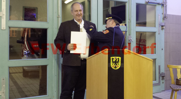 Diese Auszeuchnung ist die Höchste, die einem Zivilisten verliehen werden kann, der sich im besonderen Maße im Feuerlöschwesen engagiert. Neumann selbst ist kein aktiver Feuerwehrmann, hat aber im Jubiläumsjahr 2014, die FFW Erbendorf feierte 150jähriges bestehen, sehr viel Zeit ehrenamtlich aufgewendet, um das Jubiläumsfest erfolgreich werden zu lassen. Erster Kommandant Bernhard Schmidt bedankte sich noch einmal für die vielen guten Ideen, die Neumann eingebracht hat. Er hat vor allem das Logo für das Festjahr entworfen, über die Aktivitäten im Vorfeld und während der Festtage in den heimischen Zeitungen berichten und, das hob Schmidt gesondert hervor, eine faszinierende, umfangreiche Festschrift erstellt, die auch den Weg in die Nationalbibliothek gefunden hat.