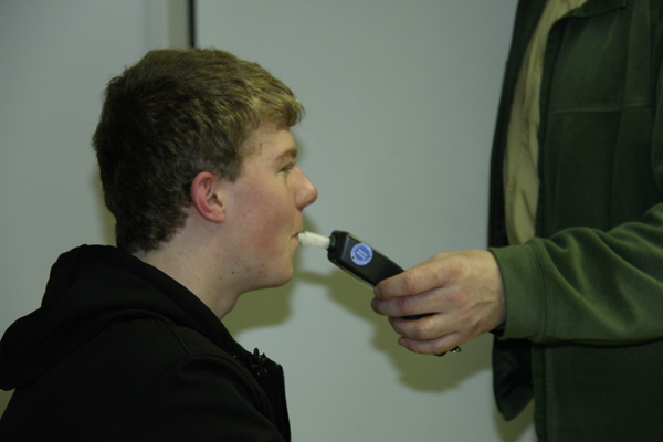 Immer wieder ist in den Zeitungen von alkoholbedingten Unfällen zu lesen. Durch den Genuss von Alkohol werden die menschlichen Sinne getrübt, so dass unter anderem die Reaktionsfähigkeit oder die Balance starkt beeinträchtigt sind. Um das selbst, im nüchternen Zusatand natürlich, nachempfinden zu können, gibt es so genannte "Rauschbrillen". Diese sind so verarbeitet, dass es sich wirklich so anfühlt, als sei jemand stark betrunken. Das Sichtfeld ist nicht nur stark eingeschränkt, sondern auch sehr verschwommen, das Umfeld kann nur noch vage wahrgenommen werden. Und mit so einer Brille auf der Nase, fällt einem dann auch das Laufen schwer. Klar, es ist ja auch kaum zu sehen, wohin man eigentlich gerade läuft. Was nicht ausbleiben durft: die Jungfeuerwehlre durften auch selbt einmal "in Röhrchen blasen". Natürlich zeigte es bei niemandem mehr als 0,0 Promille an, aber was jeder erfahren durfte: so einfach pustet es sich auch gar nicht in das Röhrchen.