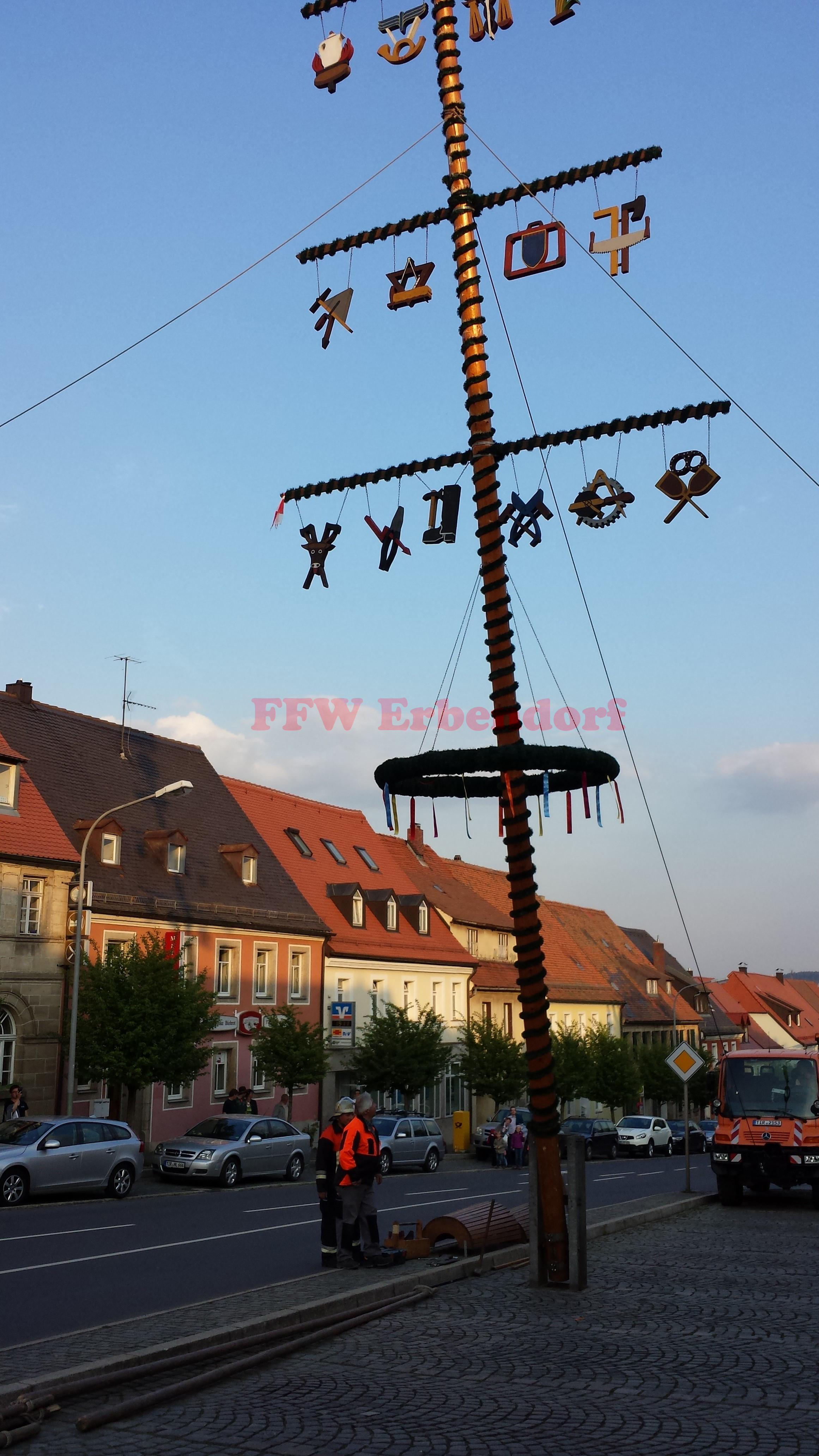 Herrlich laues Frühlingswetter, Sonnenschein und gute Laune - das Maibaumaufstellen 2014 wurde von zahlreichen Erbendorfern besucht. Und der Bayum selbst wurde unfallfrei aufgestellt.