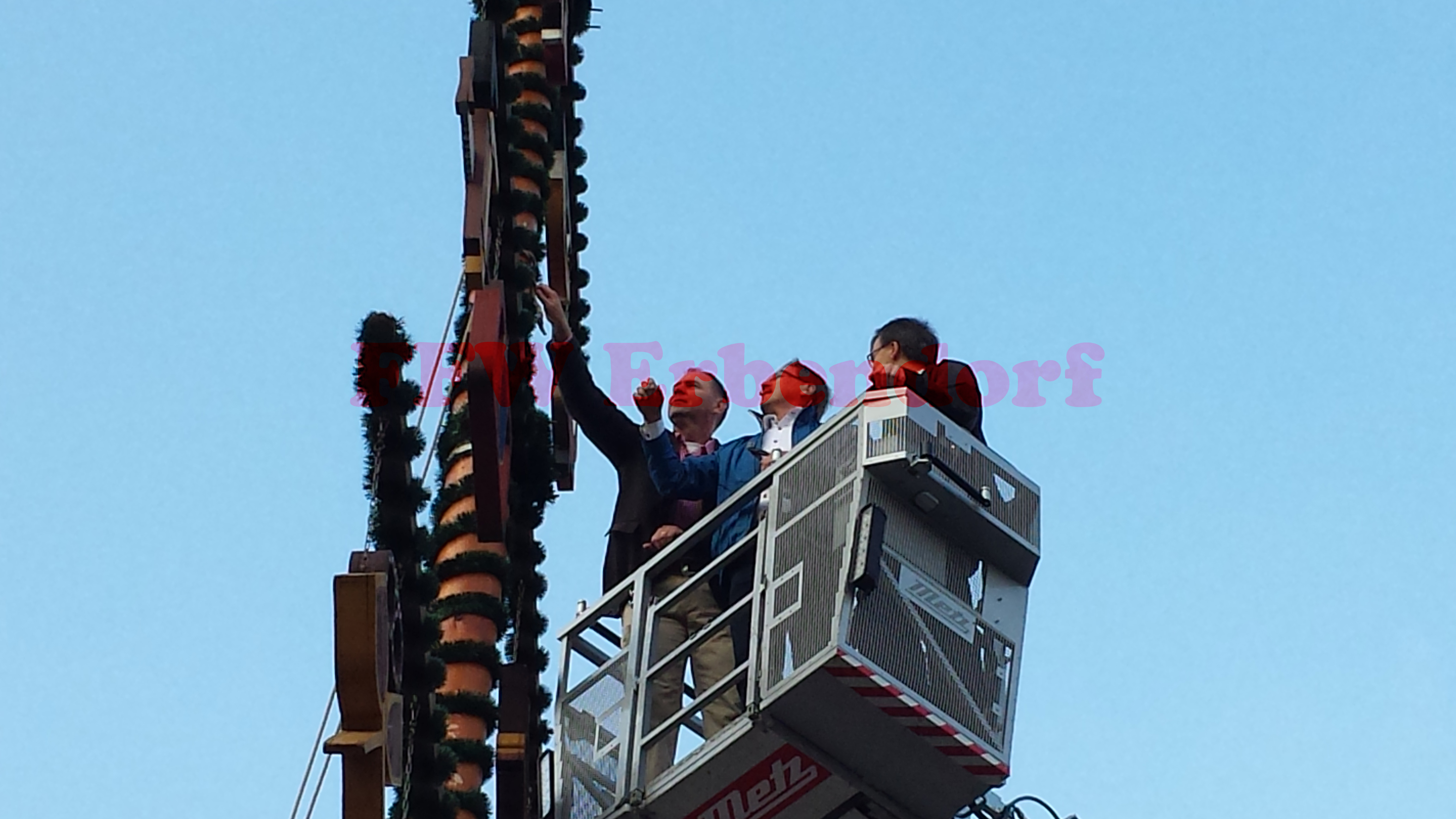 Schon wenige Minuten nach dem Eintreffen war die Feuerwehr bereit, den Baum mit den hölzernen Schwalben in die Höhe zu hieven. Auf den Befehl "Hebt an!", den der erste Kommandant Bernhard Schmidt persönlich gegeben hatte, wurde der Baum mit vereinten Kräften aufgestellt. nach nur zehn Minuten war der Baum unfallfrei in seinem Ständer festgemacht und ragt nun über der Steinwaldstadt.