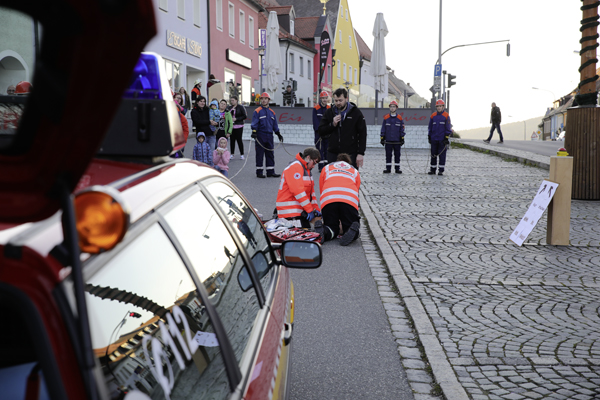 Nach dem fingierten #Unfall waren die Festbesucher sichtlich erleichtert, als Fabian Keppler-Stobrawe von der Feuerwehr das weitere Geschehen moderierte. Wie die #Reanimation genau funktioniert, zeigten die Einsatzkräfte anhand eines Dummys. "Die Organisierte Erste Hilfe Erbendorf wird bei medizinischen Notfällen alarmiert, wenn der Erbendorfer Rettungswagen nicht verfügbar ist um die Wartezeit auf das nächstgelegene Rettungsmittel zu überbrücken", erklärte Keppler-Stobrawe.